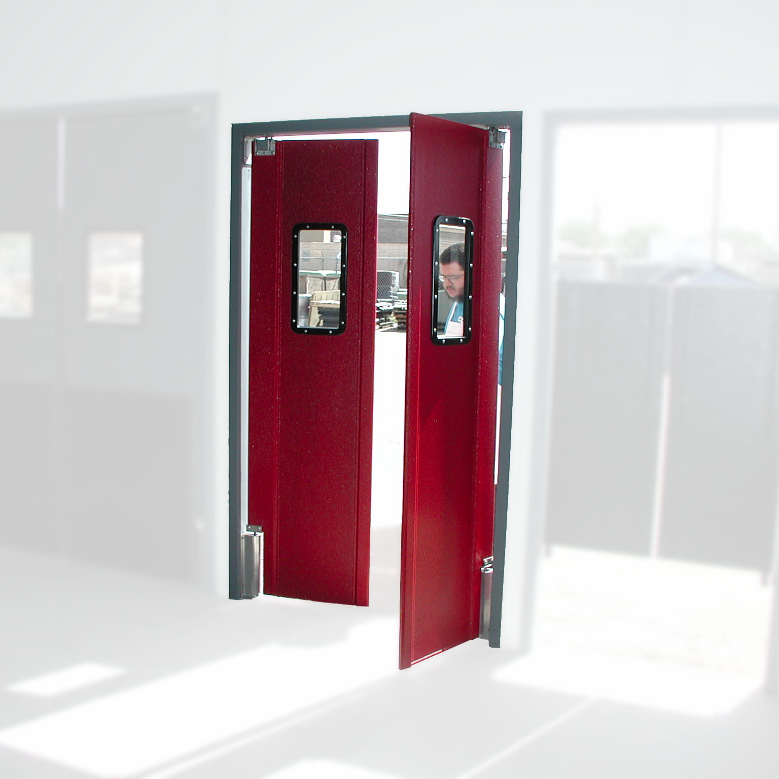 Our restaurant doors are extremely easy to clean, very good for visibility, impressively strong for durability, and perfect for noise reduction. They are also the premier tool for separating the kitchen from the dining room. The double swing door is much more sanitary than a curtain or other fabric material, and extremely easy to clean. A small amount of soap and water can sanitize the door for daily use and stop contamination. Windex is a perfect product for keeping the windows clear and clean. The doors come with windows built in to make sure staff can see each side of the restaurant, and the rest of the material is opaque to prevent customers from viewing the kitchen. The traffic doors are made with a solid wood core, steel framing, and an elastomeric coating, which is the toughest materials on the market. Double acting doors can withstand the impact of all traffic and will continue to look great after many years of use.
